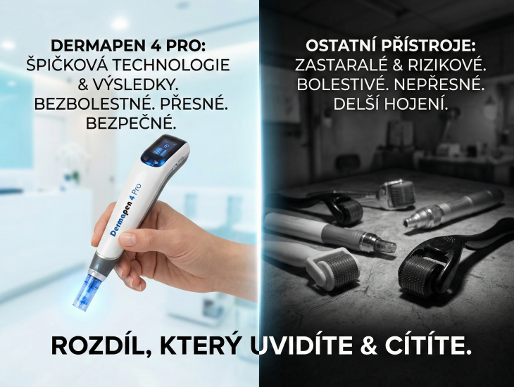 Dermapen® představuje nejmodernější technologii mikrojehličkování s vysokou přesností a výkonem. Pracuje s lineárním pohybem jehliček a umožňuje velmi přesné nastavení hloubky ošetření podle konkrétního problému pleti. V kombinaci s účinnými séry DermapenWorld™ dokáže cíleně řešit specifické kožní problémy, jako jsou vrásky, akné, pigmentace nebo rosacea.- nejmodernější zařízení na trhu